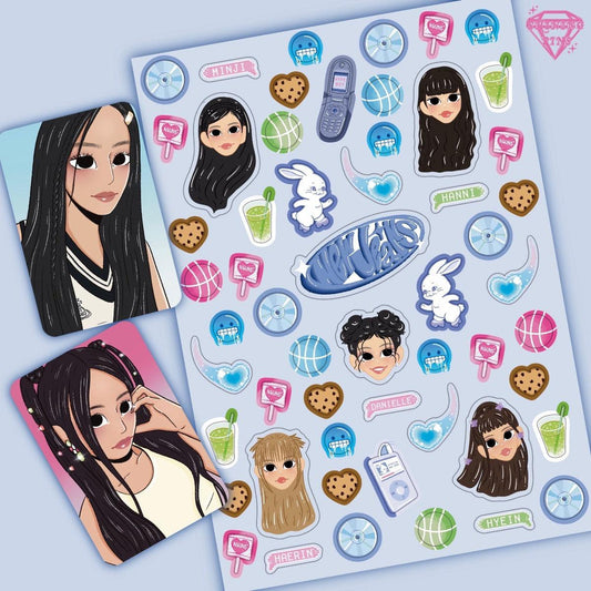 • New Jeans Sticker Sheet & Photocard Set Stickers and Stationary new jeans, stickers & stationary Shining Pins