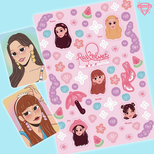 • Red Velvet 'Feel My Rhythm' Sticker Sheet & Photocard Set Stickers and Stationary red velvet, stickers & stationary Shining Pins
