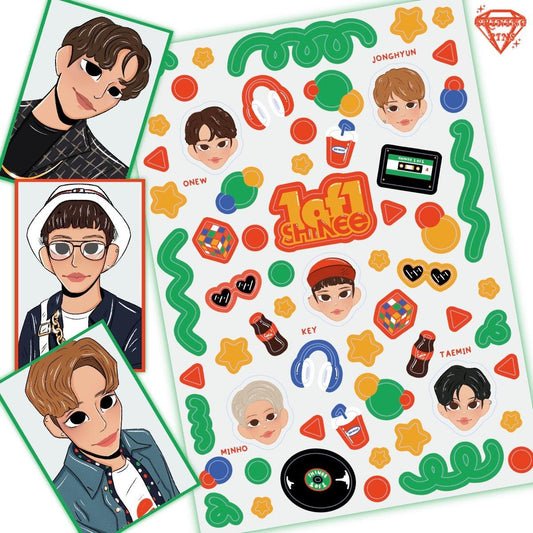 • SHINee '1 of 1' Sticker Sheet & Photocard Set Stickers and Stationary Photocards & Toploaders, shinee, stickers & stationary Shining Pins