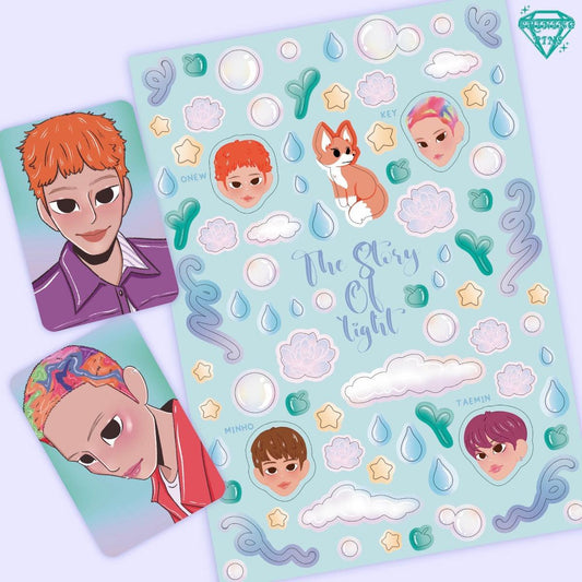 • SHINee 'The Story Of Light' Sticker Sheet & Photocard Set Stickers and Stationary Photocards & Toploaders, shinee, stickers & stationary Shining Pins